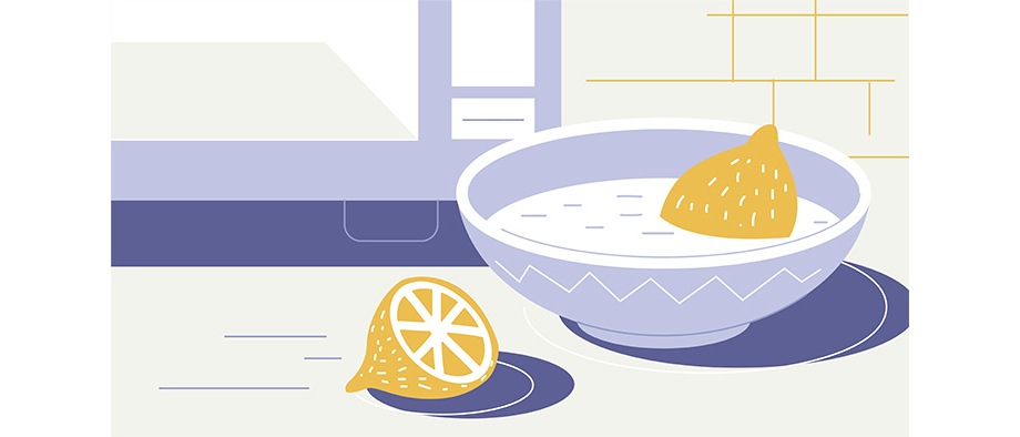 Как чистить микроволновку в домашних условиях, если под рукой не оказалось соды, а просто пар с задачей не справляется? Загляните в холодильник — возможно, там есть лимон. Разрежьте его пополам, выдавите сок в миску с водой, половинки положите туда же — и отправьте в микроволновку. Лимонный сок хорошо справляется со средними загрязнениями, а эфирные масла кожуры дезодорируют рабочую камеру, оставляя легкий цитрусовый аромат. К тому же это хороший способ утилизировать старый подпортившийся фрукт.