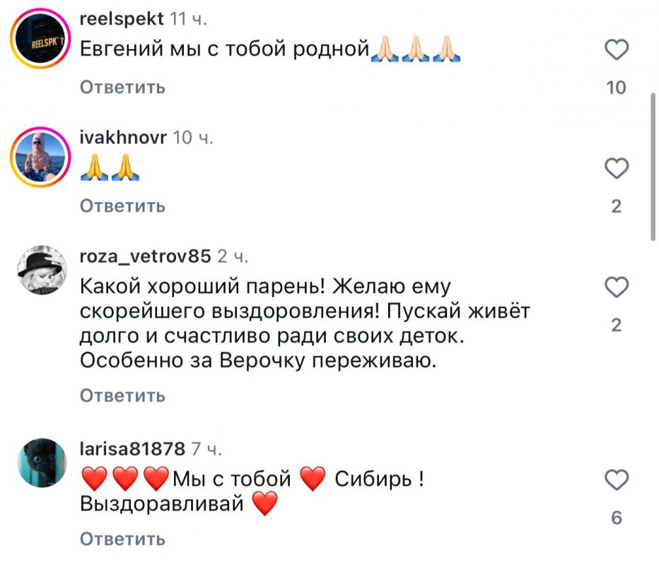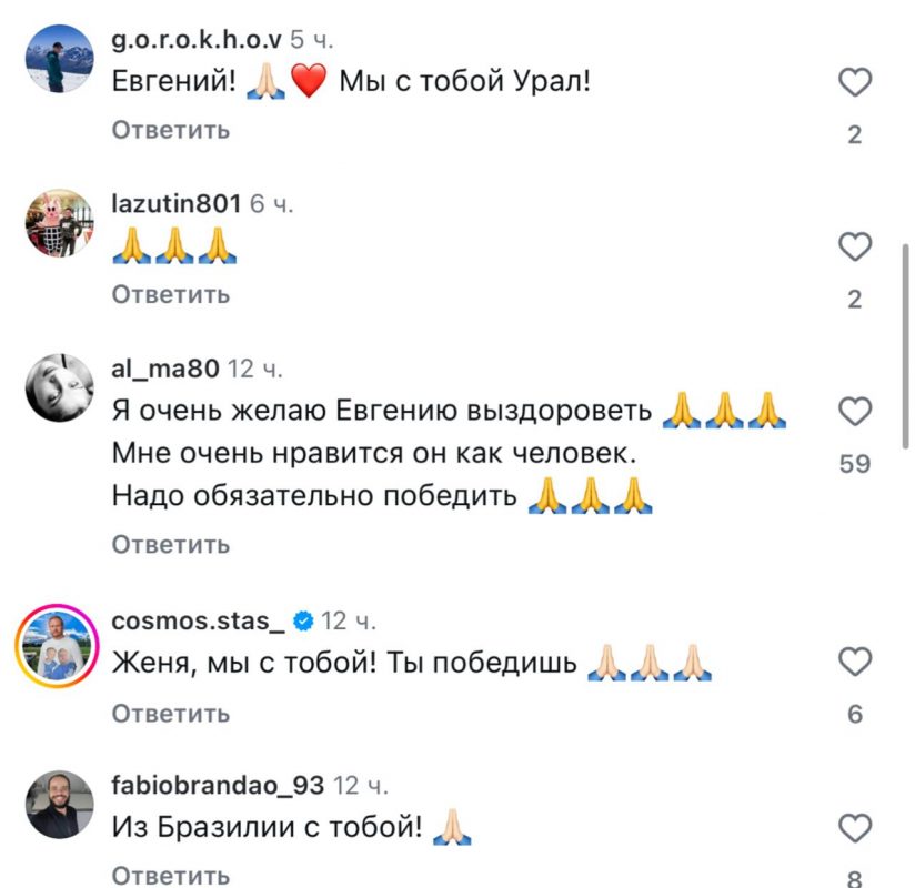 Соцсети футболиста заполнили сотни комментариев со словами поддержки: пользователи желают скорейшей поправки, вспоминают доброту и порядочность спортсмена и желают сил всей его семье.