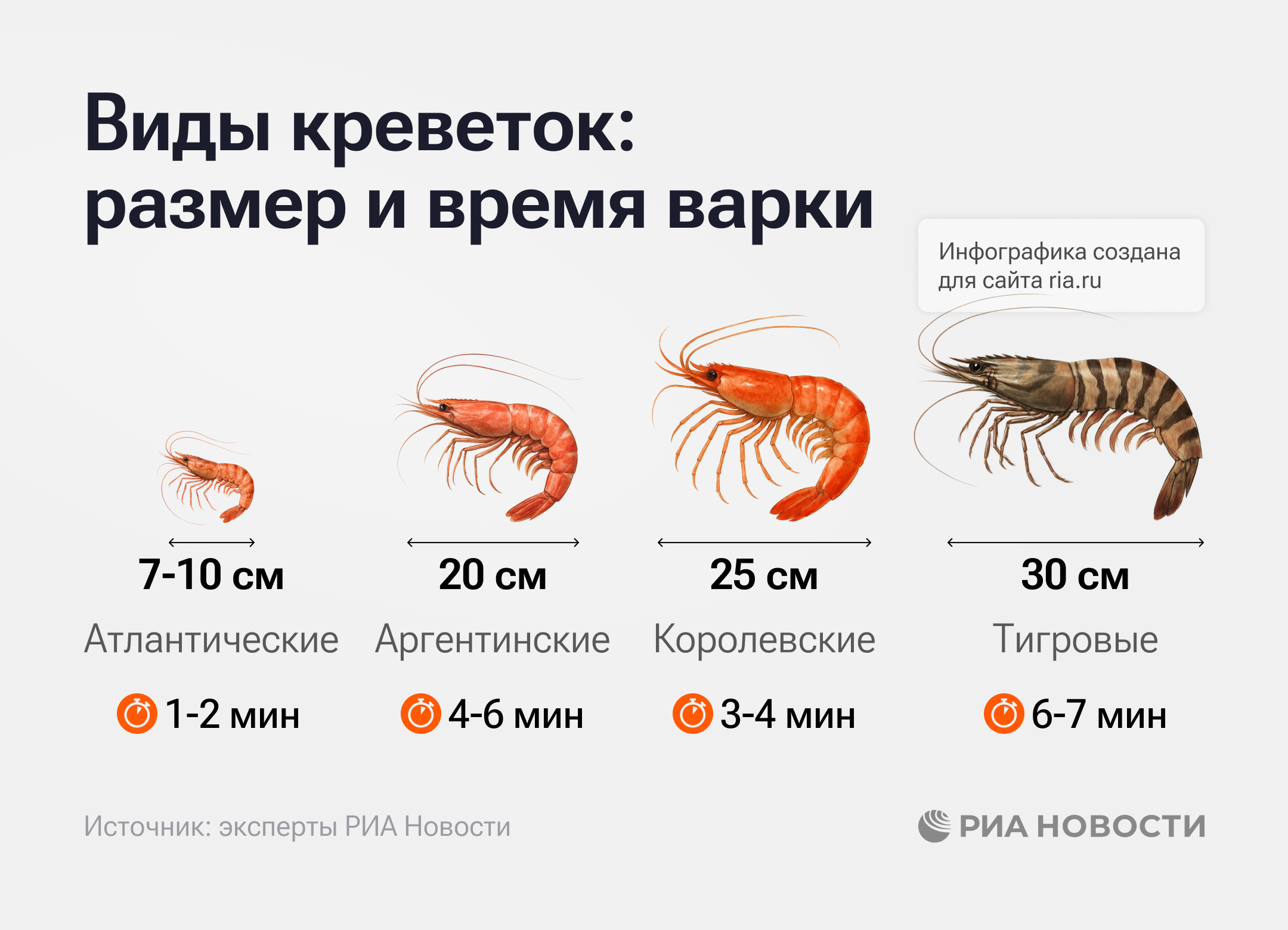 Как варить креветки и сколько времени — замороженные, варено-мороженые, неочищенные, без панциря, можно ли готовить мороженные креветки, не размораживая, таблица времени варки в зависимости от вида креветок — рецепты и советы шеф-повара в материале РИА Новости.Как варить креветки