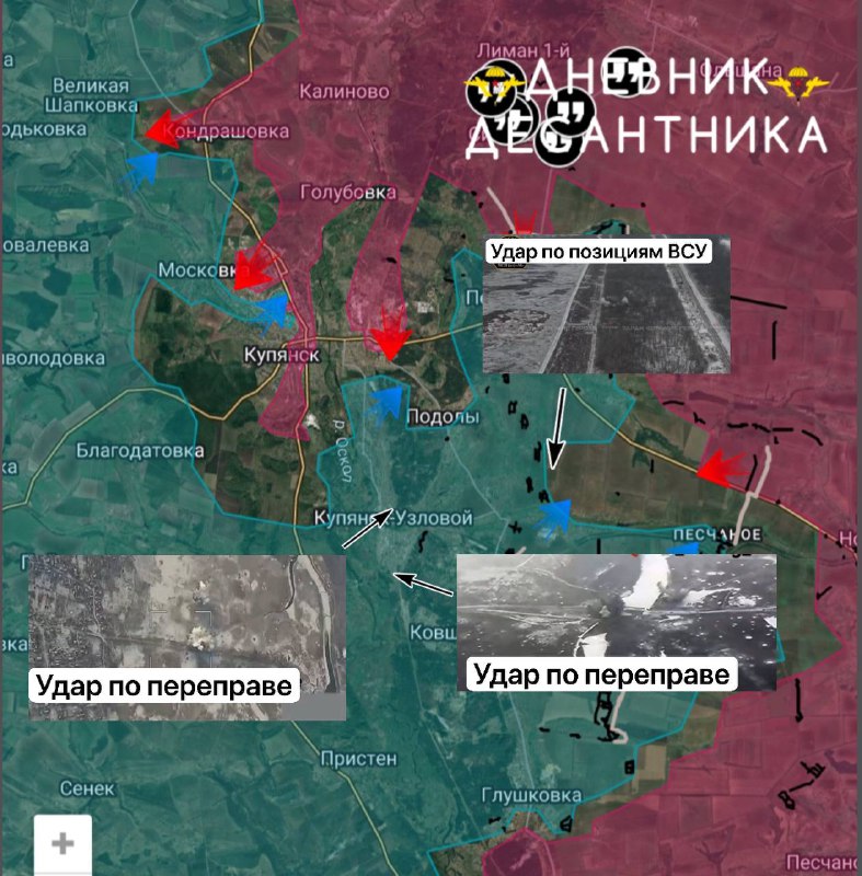 Ситуация в самом Купянске остаётся крайне сложной и запутанной. Подразделения ВС РФ закрепились на ключевых высотах, удерживают восточную часть города и ведут огневое поражение противника на западном берегу. Под контролем российских сил находятся территории от кладбища на севере до хлебозавода на западе города.