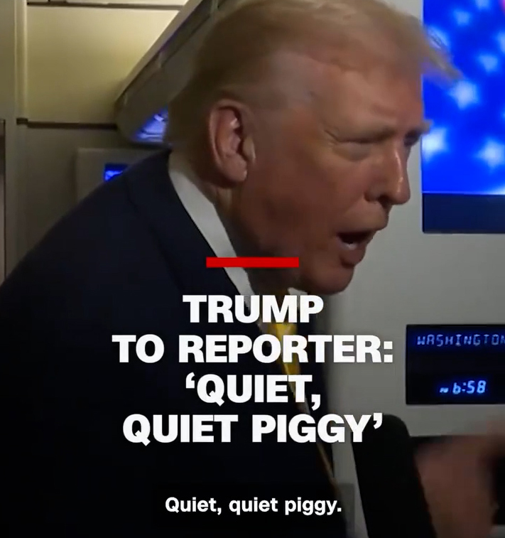 «Тихо! Тихо, свинка!», — Трамп грубо затыкает журналистку, которая задаёт вопрос по делу Эпштейна, 14 ноября 2025 года. Фото: кадр видео