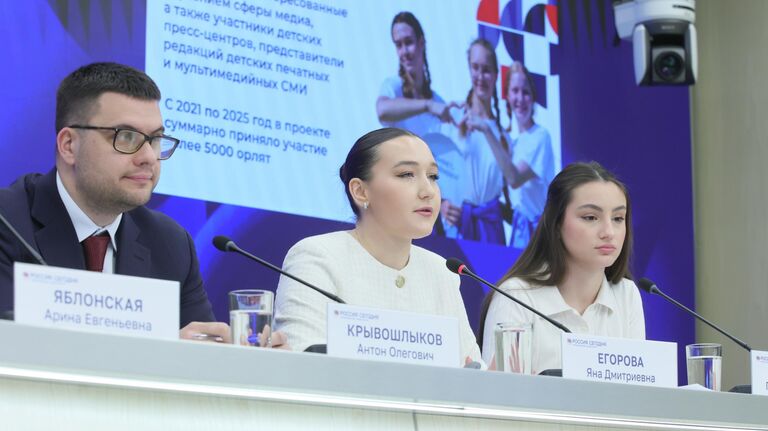 Круглый стол на тему: «Инновационная патриотическая журналистика. Итоги и тренды 2025 года»8 из 8Первый проректор Государственного института русского языка им. А.С. Пушкина Елена Павличева1 из 8Проректор по учебной работе Государственного университета просвещения Оксана Гончарова2 из 8Директор по взаимодействию с органами государственной власти холдинга «МТС Медиа» Антон Крывошлыков3 из 8Круглый стол на тему: «Инновационная патриотическая журналистика. Итоги и тренды 2025 года»4 из 8Студентка 2 курса Государственного института русского языка им. А.С. Пушкина Арина Яблонская5 из 8Руководитель Медиалаборатории инновационной патриотической журналистики Всероссийского детского центра «Орленок» Яна Егорова6 из 8Студентка магистратуры «Филологическое обеспечение СМИ» Государственного института русского языка им. А.С. Пушкина Полина Сапунова7 из 8Круглый стол на тему: «Инновационная патриотическая журналистика. Итоги и тренды 2025 года»8 из 8