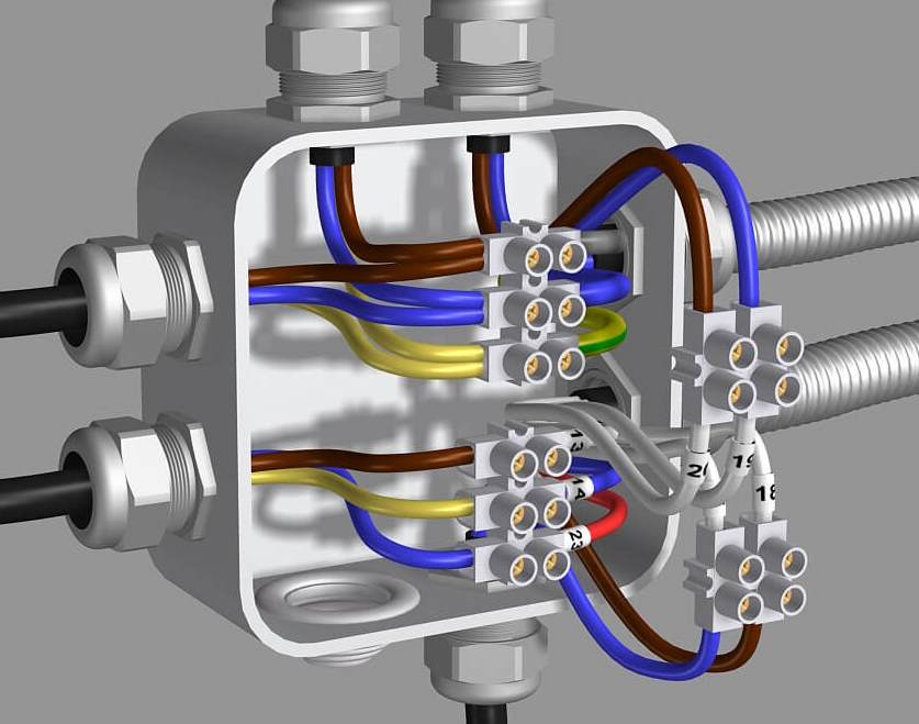 • распределительные коробки для эксплуатации вне помещений со степенью защиты не менее IP 55;