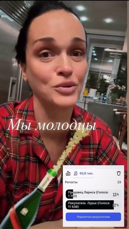 «Ура! Справедливость есть! Боже, как я этому рада, какие ужасные мысли только не посещали меня эти последние дни перед судом! Неужели в моей родной любимой стране, возможен произвол? Но нет! И мы сделали это вместе!!! Смелые и безразличные! Ну, не буду лукавить, у меня свой интерес тоже был! Но, главное, что мы победили! И не пишите мне, каково сейчас Ларисе! Мне всё равно! Нужно жалеть и понимать доброту и порядочность, а не сами знаете что!» — высказалась певица.