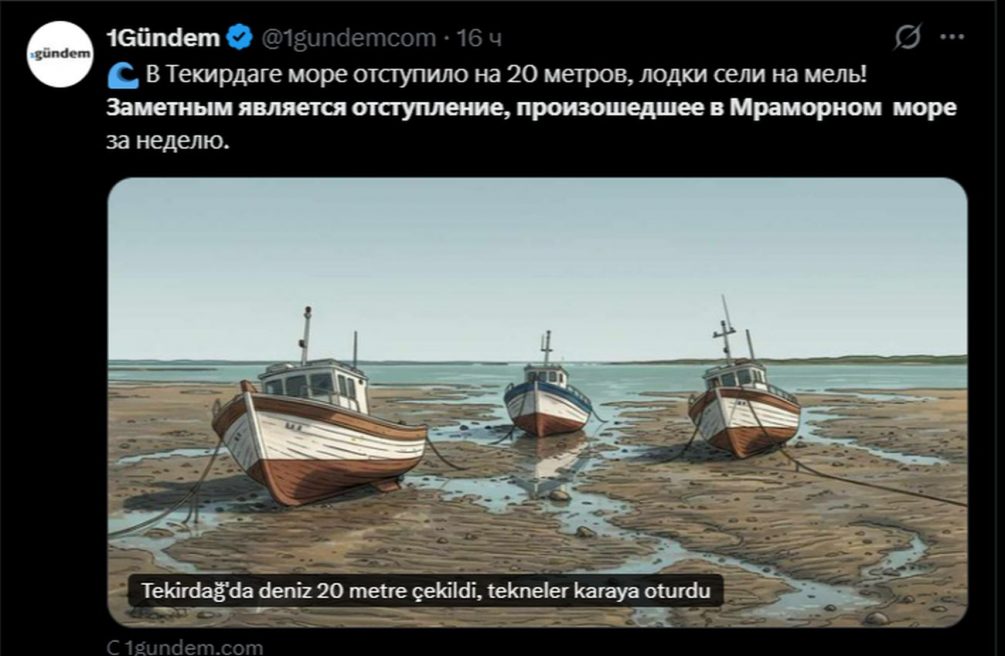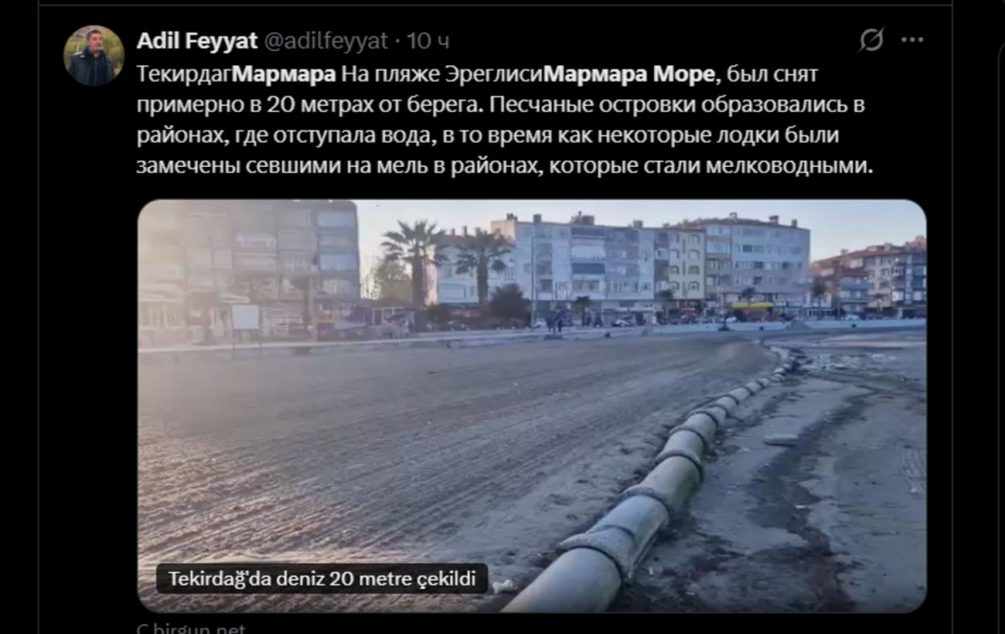«Море отступило от берега примерно на 20 метров, обнажив маленькие островки, лодки оказались на суше. Некоторые жители обеспокоены явлением», — передает телеканал Habertürk.