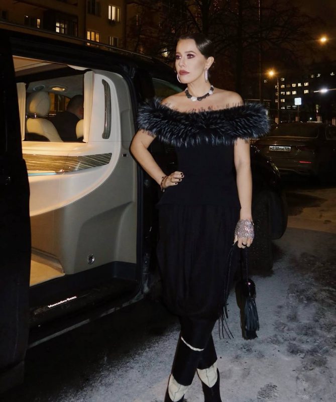 Отличный пример можно рассмотреть на Ксении Собчак, которая надела платье с меховой оборкой и открытыми плечами.
