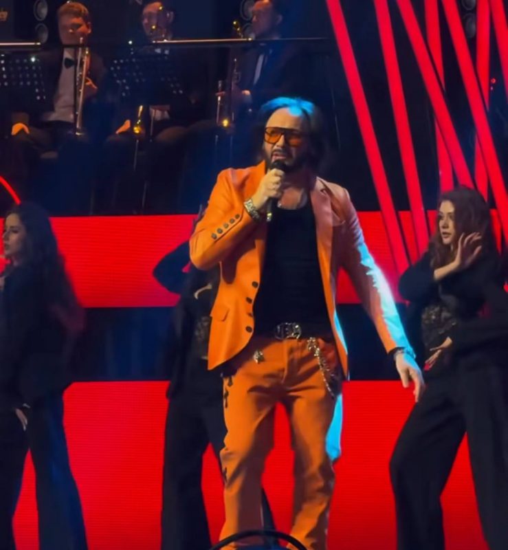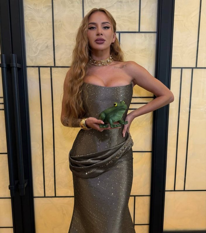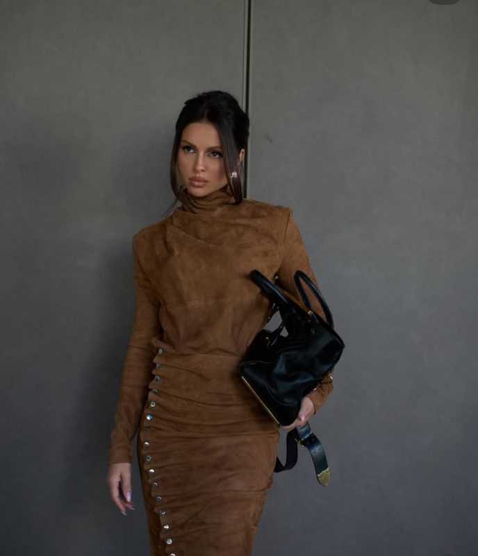 Вот пример отличного образа от Нюши не только с трендовым цветом, но и интересной фактурой платья.